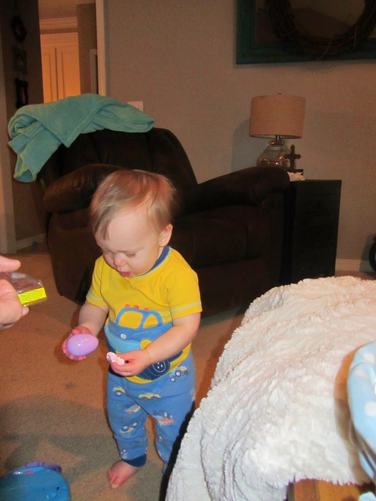 I was surprised how much Brant actually got the egg hunting. Well we pointed them out and he picked them up. I think because they resemble a ball.