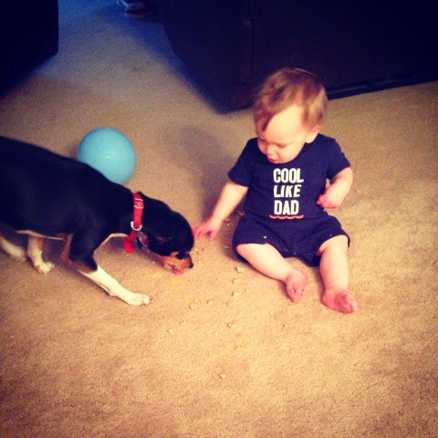 The other day I left the room for literally 2 minutes, and this is what I came back to... Theses two sharing a snack of animal crackers they (Brant) got for themselves.